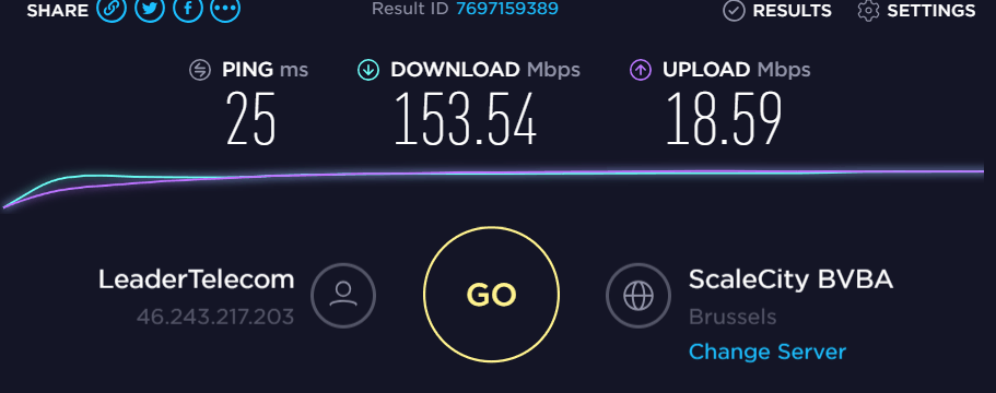 - Belguim was 25ms/153.54Mbps/18.59Mbps