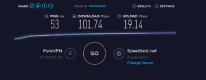 One of the reasons I liked Freedom was its ability to quickly connect the network and then provide a consistently reliable speed throughout the day. It is incredibly annoying forgetting that you have a VPN running and wonder why your internet is going so slowly or pages just not loading due to connectivity issues.With some other VPNs I have had issues with disconnects too, it would just hang and completely kill my internet connection often forcing me to restart.During my testing I found PureVPN to perform very well, connection took maybe less than 5 seconds for most options and speed tests on speedtest.net were impressive. In fact, it outperformed Freedome in many of the scenarios I tried. I also experienced no issues with disconnecting and reconnecting.My speed test prior to running the following tests was 37ms ping, 213.50Mbps and 20.50Mbps. I am on the VIVID 350 package with Virgin, and usually get over 300Mbps but must have been having a bad day when I ran these tests.Using the UK option, I was able to achieve a ping of 25ms and a download of 142.57 Mbps with an upload of 19.68Mbps. This is very impressive and allows me to do my day to day work with no noticeable differences in speed.Switching to the US I achieved 188ms/26Mbps/4.88Mbps- Denmark was 53ms/101.74Mbps/19.14Mbps
