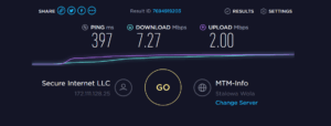 - Seychelles was 397ms/7.27Mbps/2Mbps