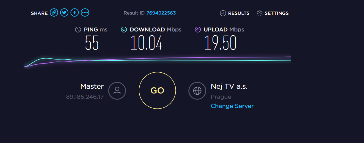 - Czech was 55ms/10Mbps/19/50Mbps