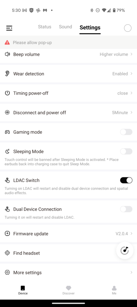The QCY app allows users to adjust ANC modes, customise touch controls, and set equaliser preferences. While the app offers extensive functionality, its interface appears dated and could benefit from design improvements. Features such as ‘Find My Earbuds’ and firmware updates are helpful additions.