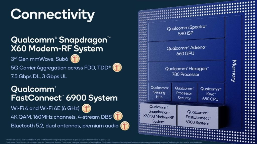 Since 5G launched on Qualcomm devices, they have had to use an external modem, but Qualcomm has finally integrated this onto the main SoC with the new X60 modem.