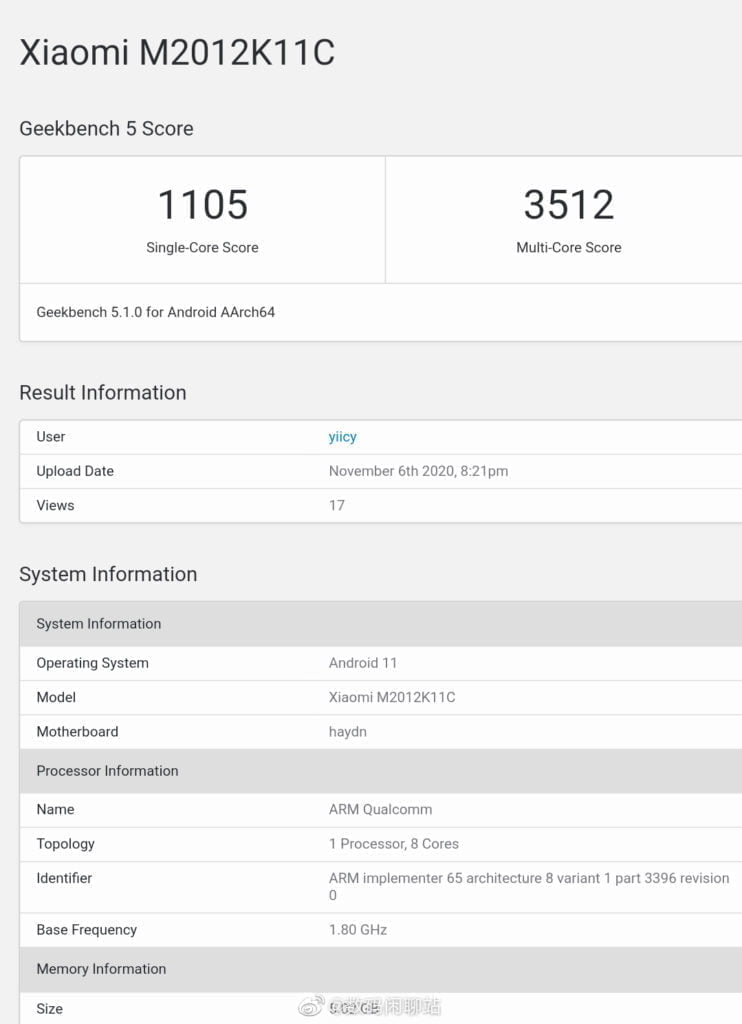 The most authentic is the Geekbench leak of the Xiaomi Mi 11.
