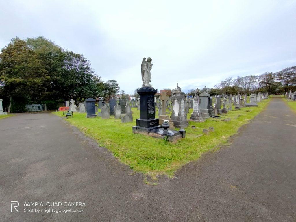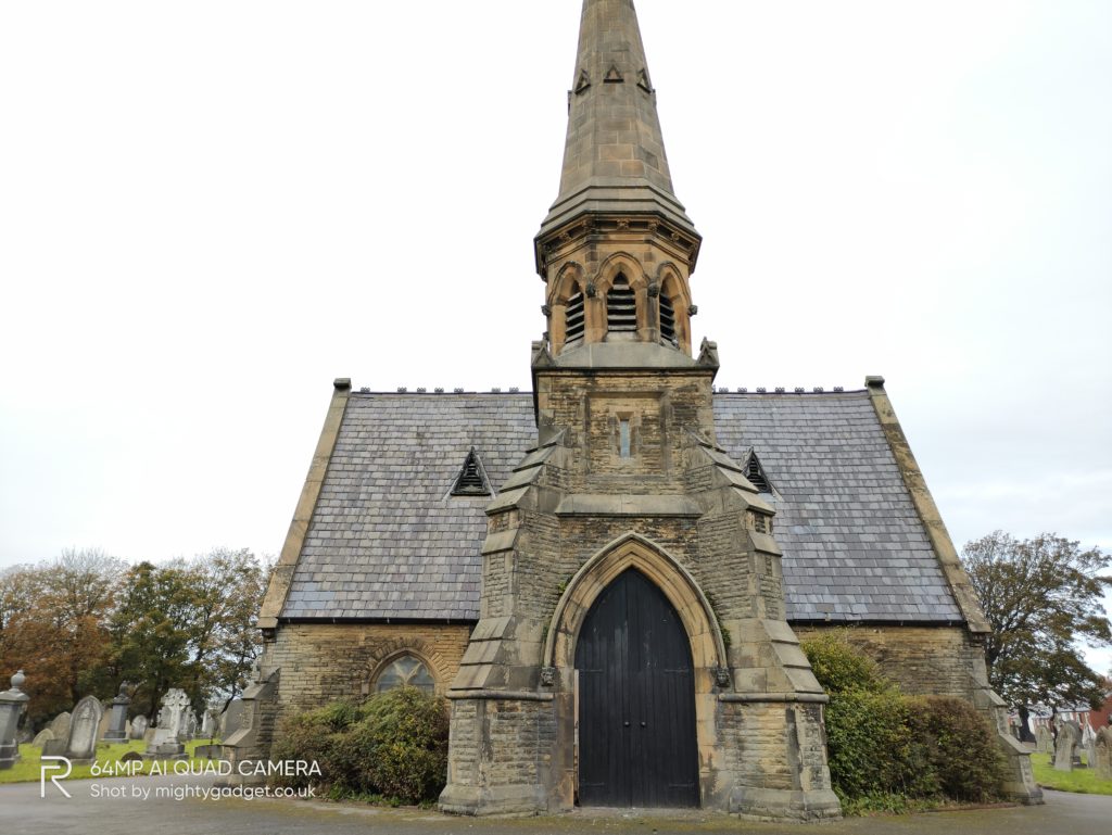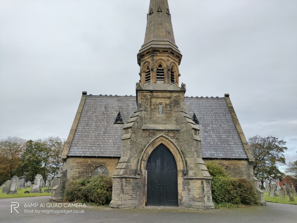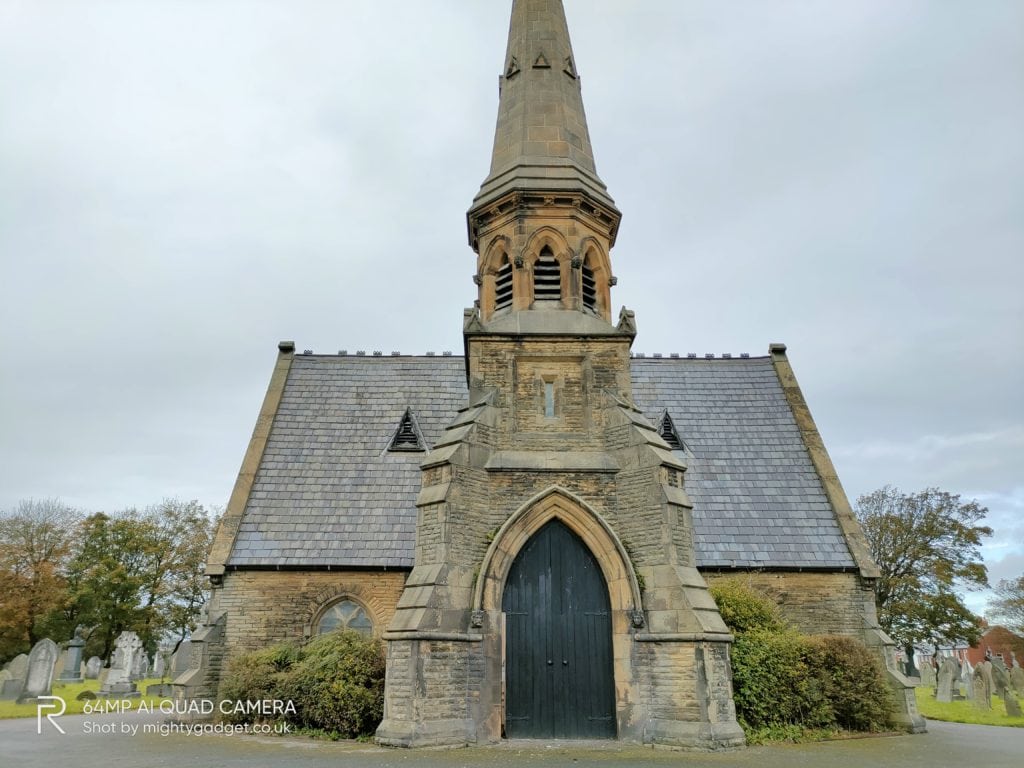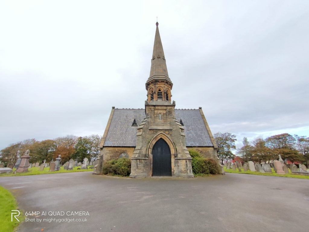 Like most phones, you can switch off the pixel binning to achieve the full 64MP resolution, however, this then introduces a small amount of processing delay. The end result doesn’t offer that much over the standard 16MP shots. In the below example of an old building within a cemetery, the 64MP shot appears to be a little overexposed with the sky. The 16MP shot was perhaps a little more representative of the dull day it was.