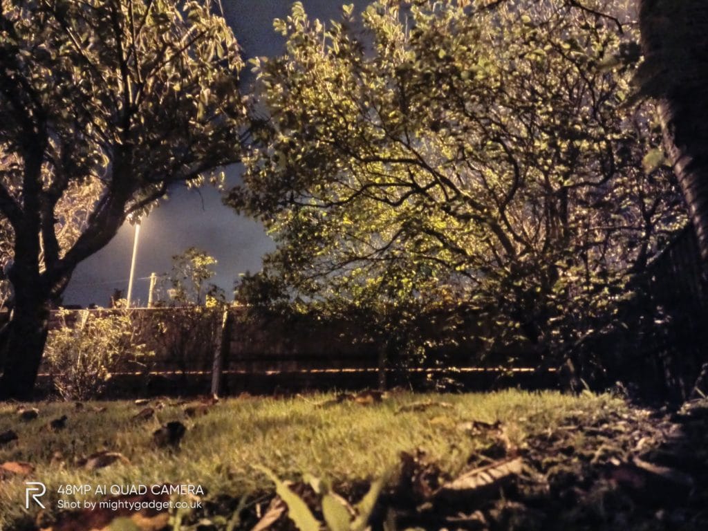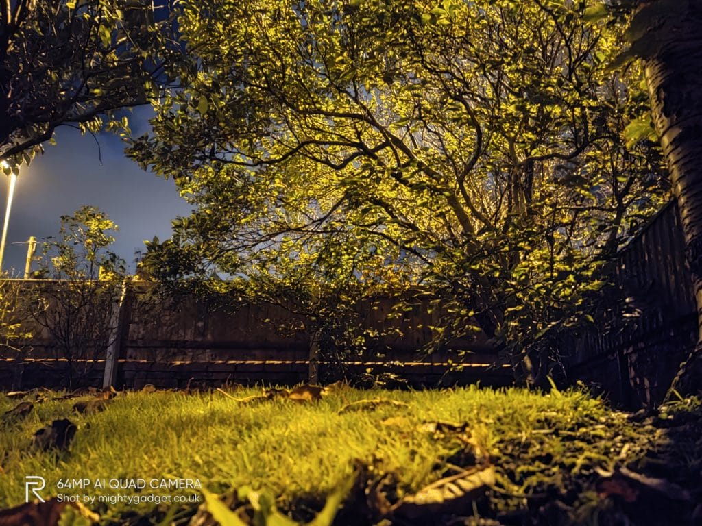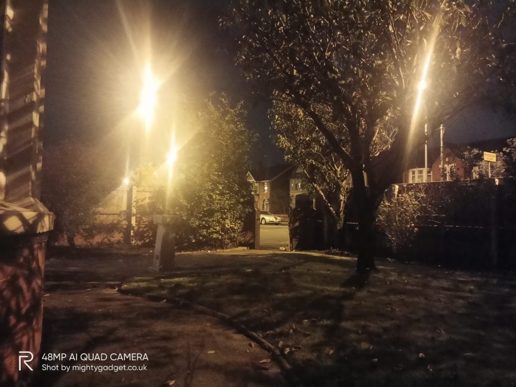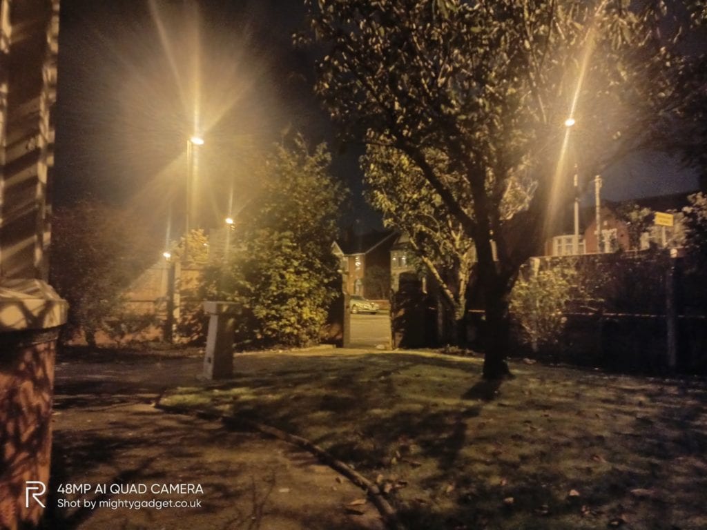 Low light performance is quite good too, this is often something that differentiates a good phone and mediocre. The performance is significantly better than the Realme 6. At 5 am taking a photo in my front garden the Realme handled the poor lighting quite well, with a tiny amount of light flare from the street lights. The Realme 6 on the other hand suffered badly with the street lights.