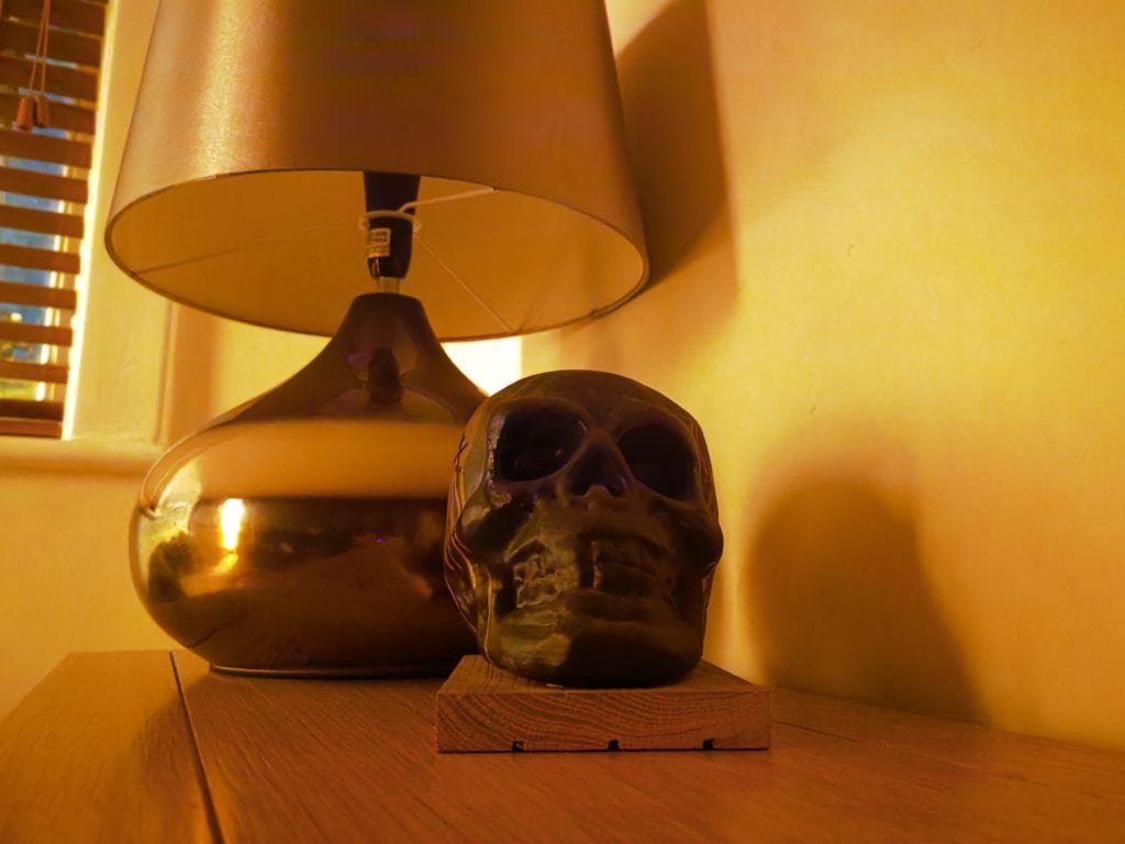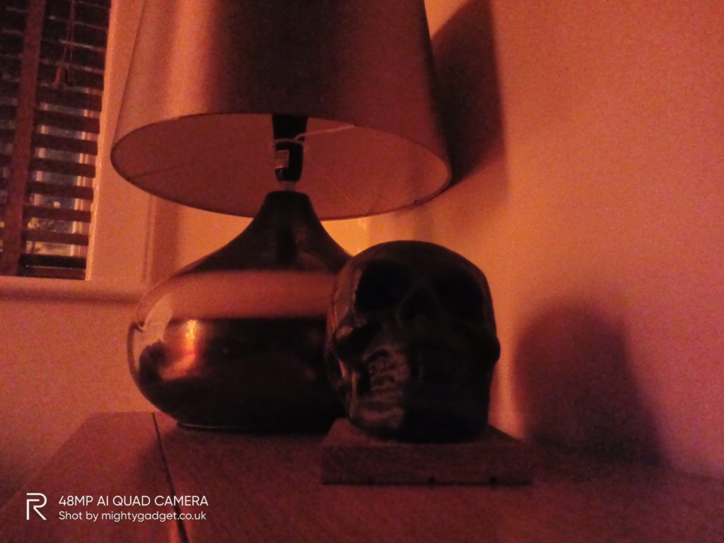 Moving indoors, the room I was in was pitch black at first so I switched on the hallway light to provide a tiny amount of light. In this scenario, the Realme 7 Pro did quite well, it struggled to focus on the object as well as introduced a lot of noise, so the end shot is a little fuzzy, but it handled the low light well. Again, the Realme 7 struggled. For reference, I also used the Huawei P40 Pro which has the largest sensor on the market and also costs around four times the price. This had no issues at all with any aspect of the low light.