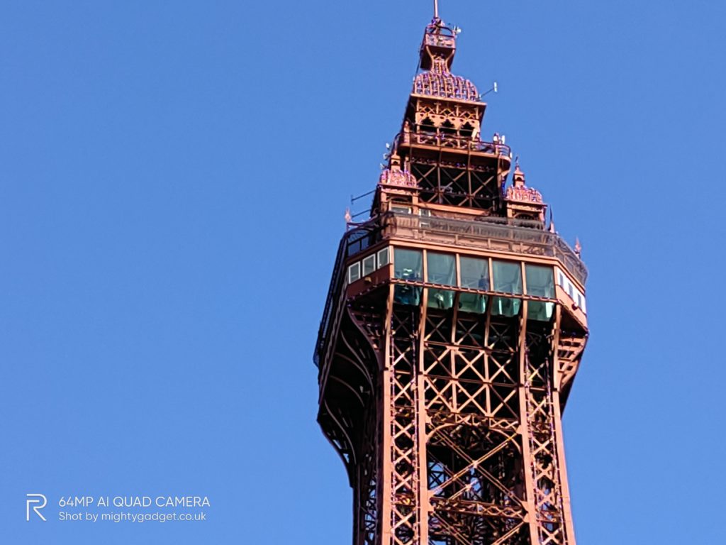 Zooming into the top of Blackpool Tower looks bad on the Realme 7, but it is actually reasonably good on the Pro model.