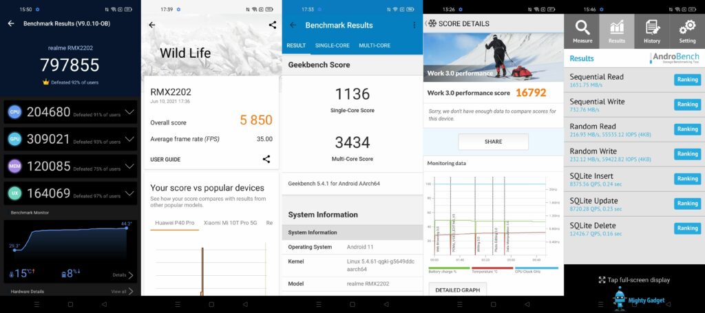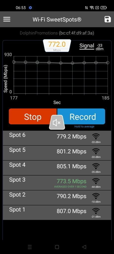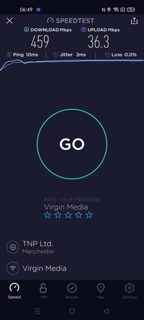 I noticed TechTablets had stated there were Wi-Fi performance issues with the Chinese import of this phone. I experienced no such issues, the phone connects at 2400Mbps with 160Mhz Wi-Fi 6 on my Zyxel access point, and it connects to my Virgin internet at 500Mbps. LAN speeds remain consistently well above 750Mbps moving around my house. In my office, it performed slightly better than the OPPO Find X3 Neo, with the signal showing stronger (33bBm vs 37dBm) on the Realme when both phones were in the exact same position.