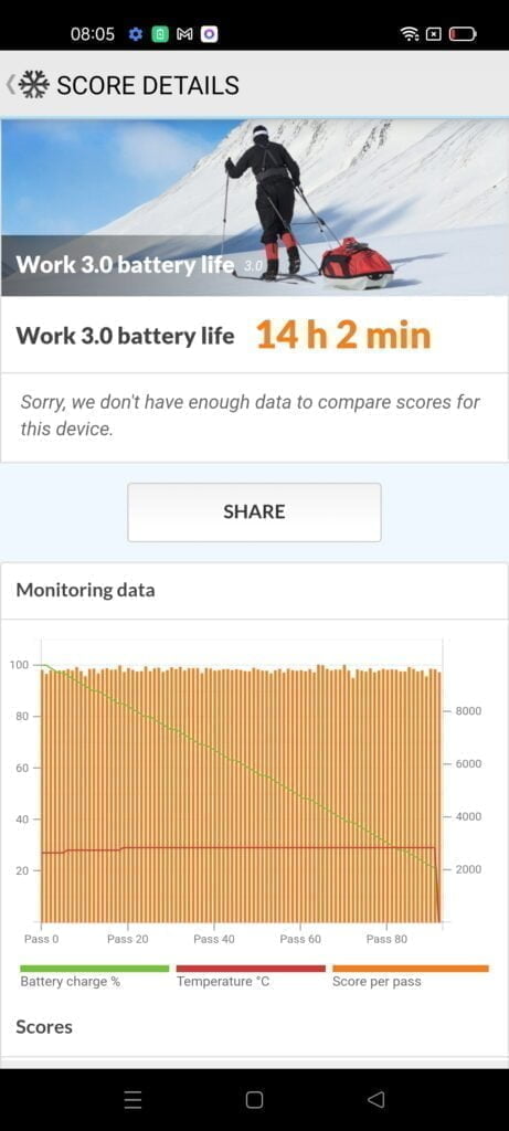 The Realme GT scores an incredible 13h 58, higher than any other SD888 phone I have reviewed. The GT Master edition is only 4 mins ahead.