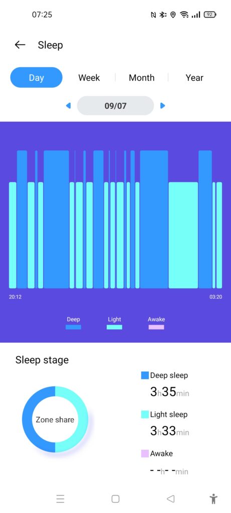 Sleep tracking is reasonably accurate. I am yet to find any wearable or sleep tracking device in general that I would regard as highly accurate. The sleep time appears to match up with my Garmin, and I would say it is better than the Honor band with its weird sleep start time that is always 8 pm for me. However, Realme only identifies deep sleep, light sleep and being awake. It didn’t identify my wake times properly (I literally got out of bed), but this is quite common with wearables.