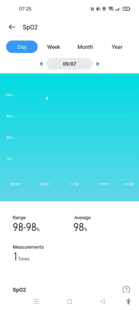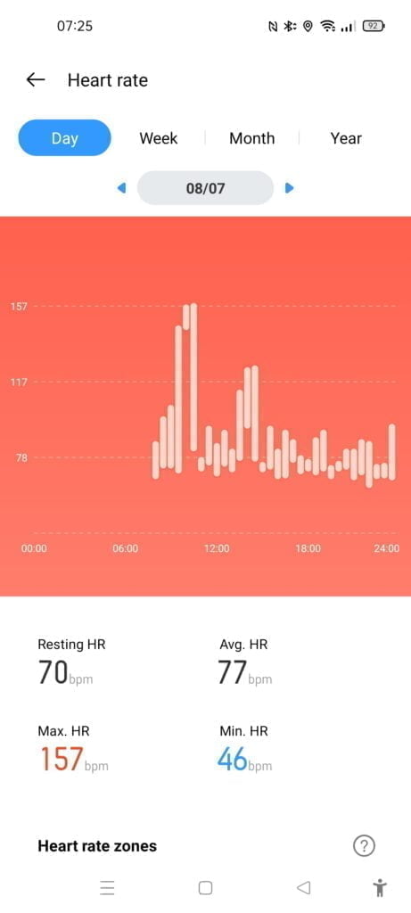 The all-day HR works in a similar manner to Huawei, giving you max, min average and resting heart rate. I never really understand how these companies come up with resting heart rate, it should be the lowest heart rate while awake (and completely rested), but the resting HR on Realme (similar to Huawei/Honor) is significantly higher than my low points during the day. Garmin isn’t much better.