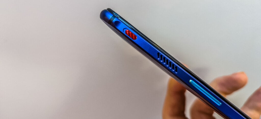 The phone has the power on the right and a volume rocker on the left; you then also have the physical switch for the gaming mode. On both sides of the phones are vents for active cooling, then there is an additional vent on the rear. The shoulder triggers are located don’t he same edge as the power button.