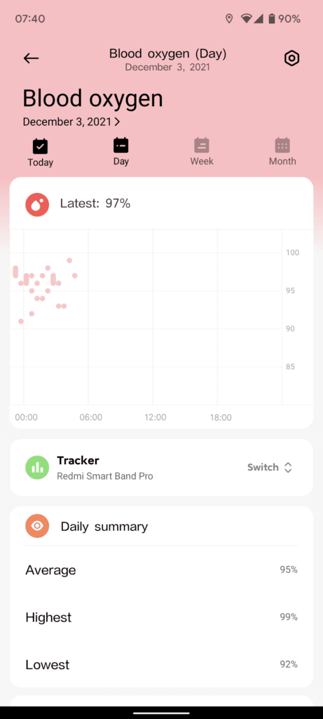 - Automatic SpO₂ when sleeping, manual testing during the day