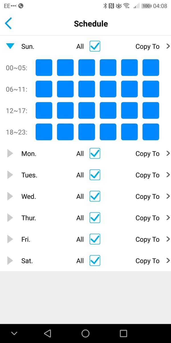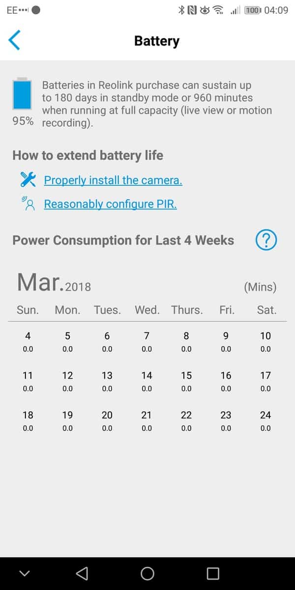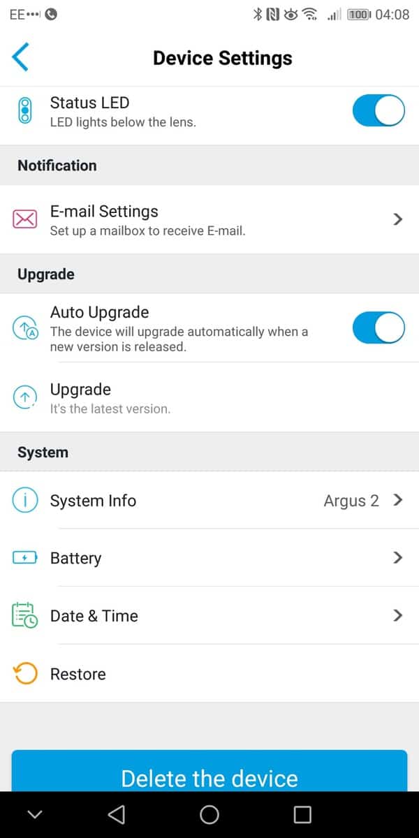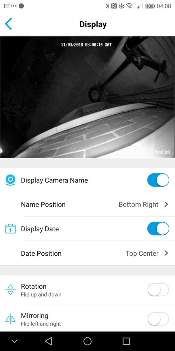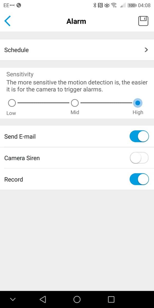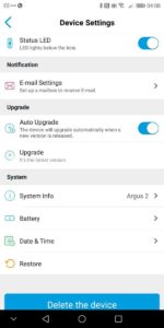 As I used the Mate 10 Pro as my primary phone, my review is restricted to the Android App. I am pleased to say it works well and navigating all the options in intuitive.The main screen shows all your cameras, in my case just one. Then within the camera you can enable live view, I found establishing the connection to be within a reasonable amount of time, it took maybe 1-2 seconds. I was also able to reliably establish remote connections when needed. During the live view, you can optionally take a screenshot or start a recording.The camera has a speaker built in so you can also optionally speak to people. Due to the placement, I didn’t test this extensively, but the speaker during setup was loud enough and clear. This would be a great feature if the installation is close to your front door, you can then speak to delivery drivers if you are not in.You can manage the PIR settings and have it set up on a schedule if you choose. There are three sensitivity options, and you will need to play with this to get reliable recordings. I tried the high setting, and even a slight shadow would trigger a recording. Within the PIR settings, you can have the camera enable a siren and/or email you.