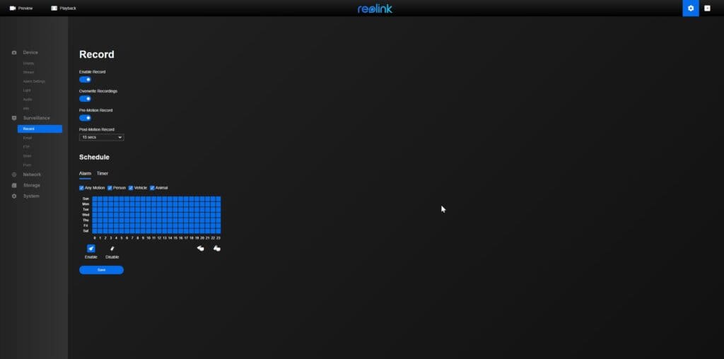 One of the main selling points for Reolink is the executive recording options. The camera supports microSD for affordable local storage, you can also compliment this with FTP uploads.