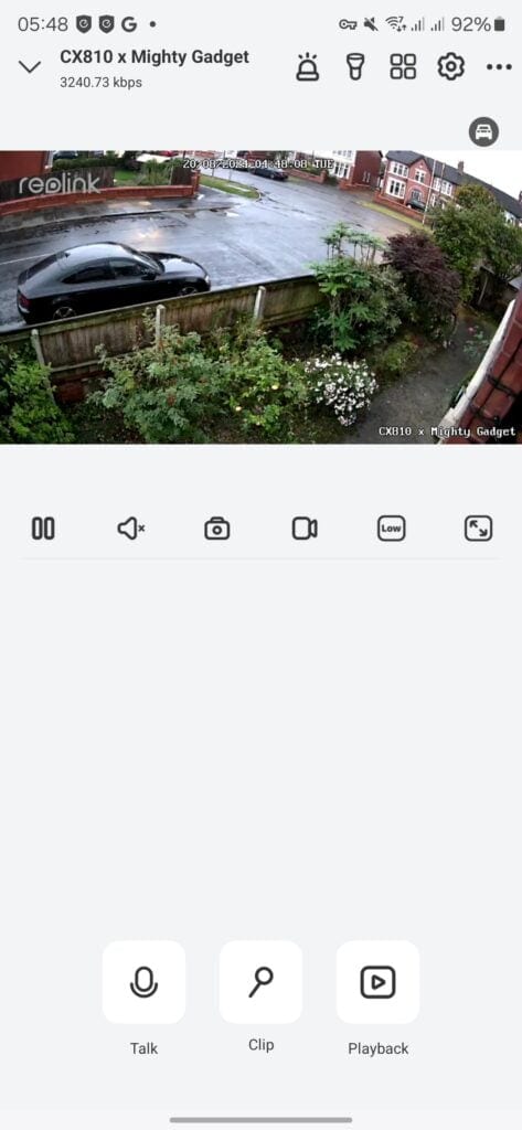 When ambient light drops further, the CX810 activates its built-in spotlights. These provide additional illumination while maintaining full-colour images. The transition is smooth, and the warm 3000K light is less harsh than the blue-tinted light often seen in other security cameras.