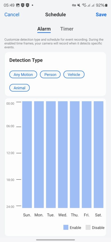 | Smart Alarm | Motion detection, person detection, vehicle detection, animal detection |