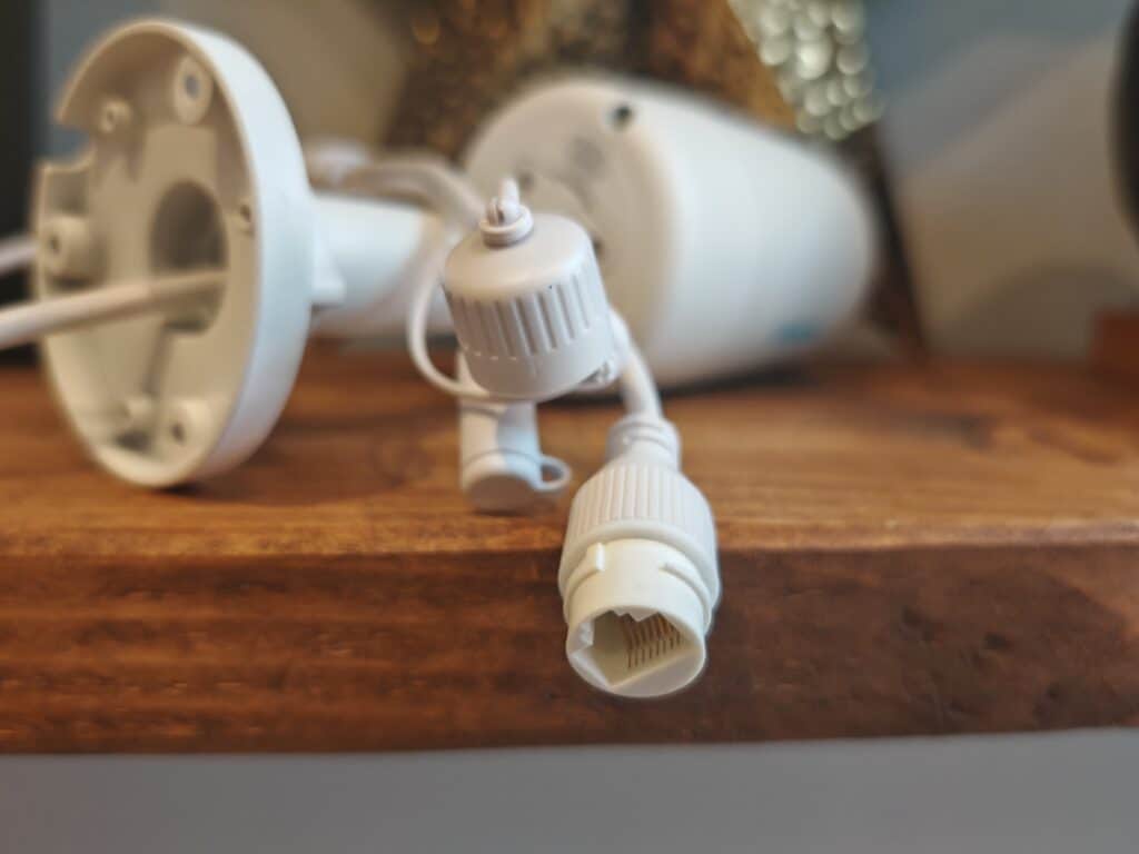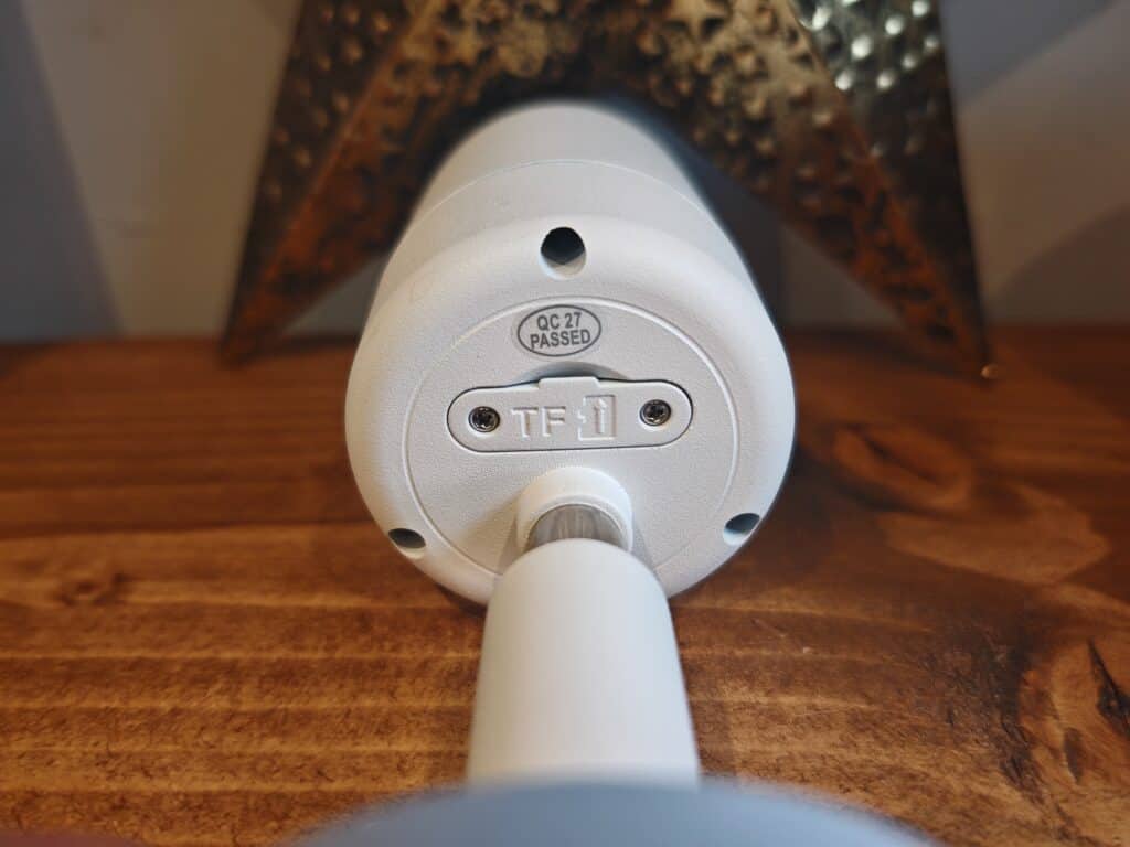The camera itself follows the same bullet-type design as its predecessor, the CX410. It’s constructed entirely of metal, giving it a robust feel and reinforcing its weatherproof credentials. The lens is prominently positioned at the front, flanked by the supplemental spotlights. On the underside, you’ll find the microphone and speaker for two-way audio communication.