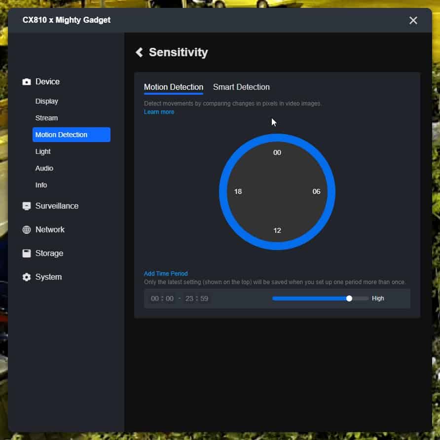 The CX810’s motion detection capabilities are robust and highly customisable. The camera uses advanced AI to distinguish between people, vehicles, and animals, significantly reducing false alarms caused by factors like moving branches or changes in lighting.