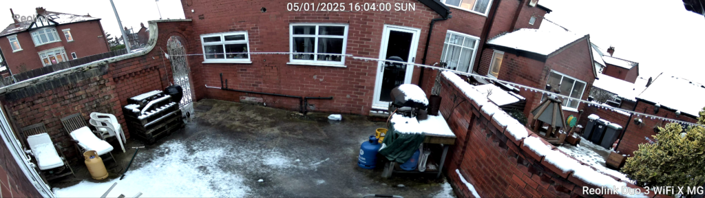 The camera’s ability to produce a seamless 180-degree panoramic view is another notable aspect of its image quality. The stitching methods employed by Reolink result in minimal distortion. You generally can’t see where the images are stitched together, but in my garden, there is a clothesline across the garden, and you can see where it isn’t quite aligned correctly. Additionally, sometimes, when it rains (or snows), you will get one lens that is obscured, but that’s just the nature of these surveillance cameras if exposed to the elements.