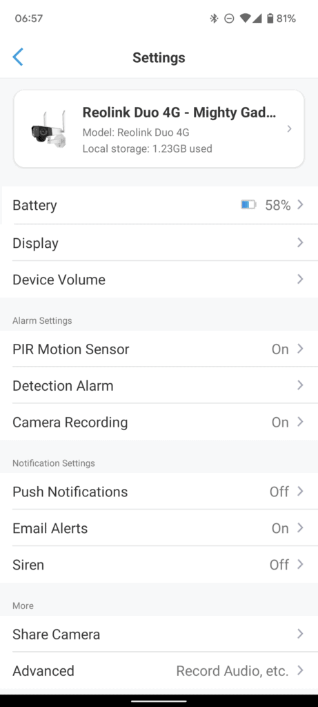 Battery life is a concern. You have two cameras and spotlights to power. Reolink has done its best to accommodate this by fitting a large 10400mAh battery. This is 33% bigger than the battery in the Reolink Go Plus.