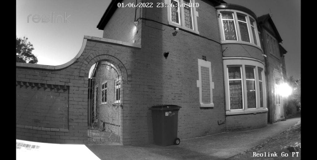The above photo shows the quality of the night footage with my camera spotlights switched off, but there is not much I can do about the street lighting.