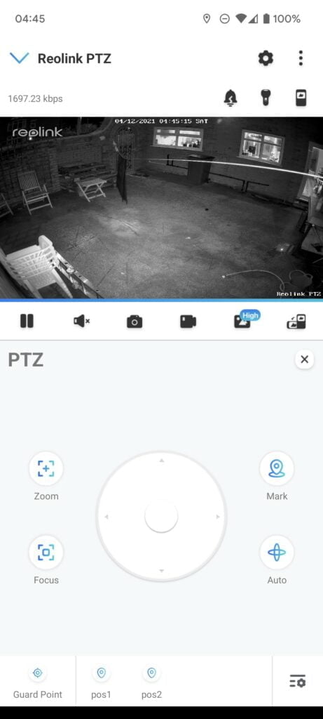 With my camera placed quite low down, I found that the verticle tilt didn’t go very high, so if I zoomed in, it would zoom down to the floor. I think most people would mount this well above head height, so I doubt this would be an issue for many people.