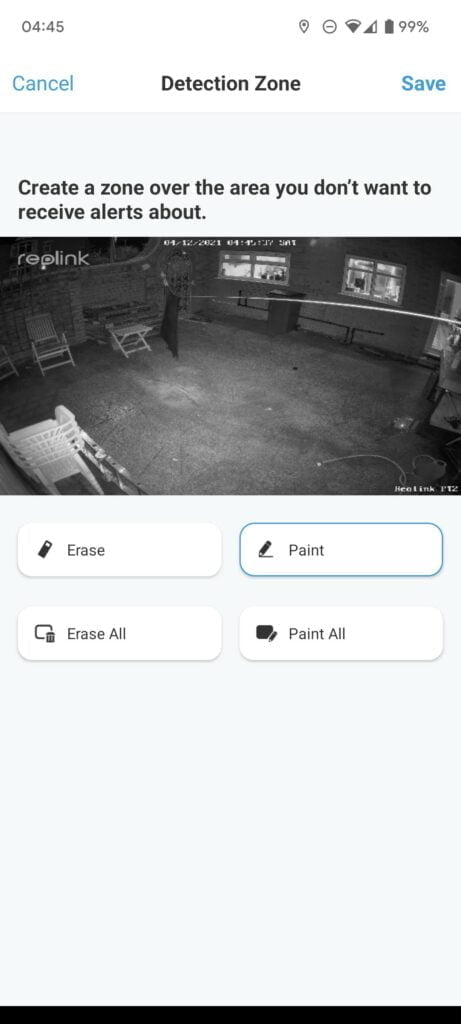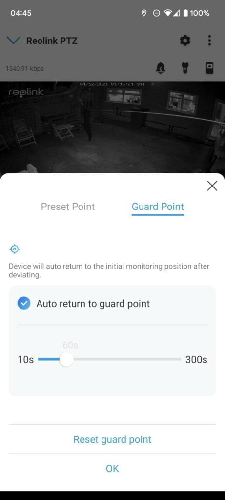 Then there is also a cruise path (which I think is the same as patrol in the app), allowing you to set up the camera to pan and tilt by itself, providing surveillance coverage over a wide area. This is set up using the presets, and you can define how fast it moves to the points and how long it stays in the points.