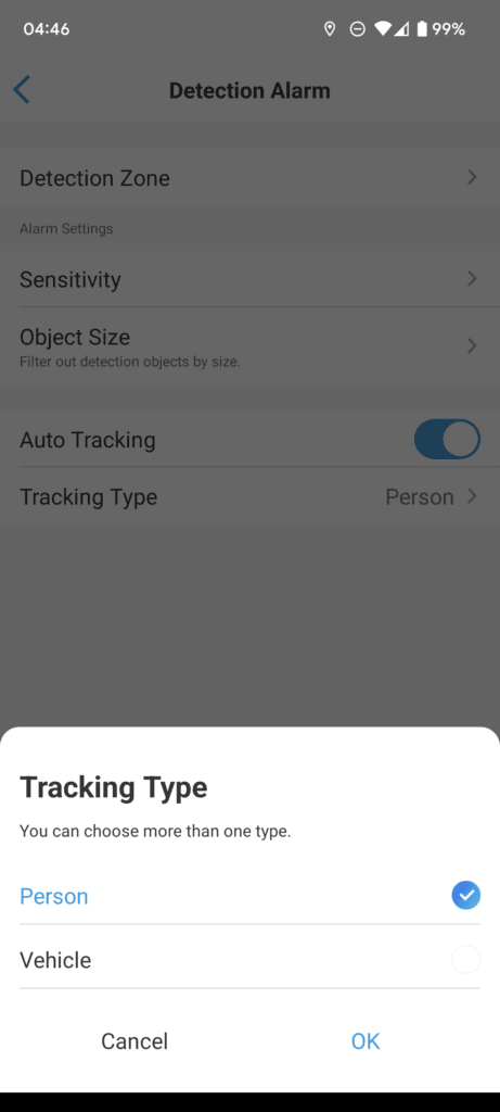 For me, the main thing about this camera is the auto-tracking pan/tilt when detecting objects. As it was set up in my back garden, I have it set for people only. It works as expected, and it works well.