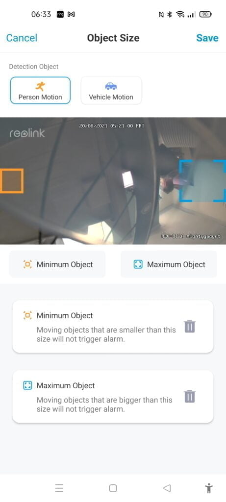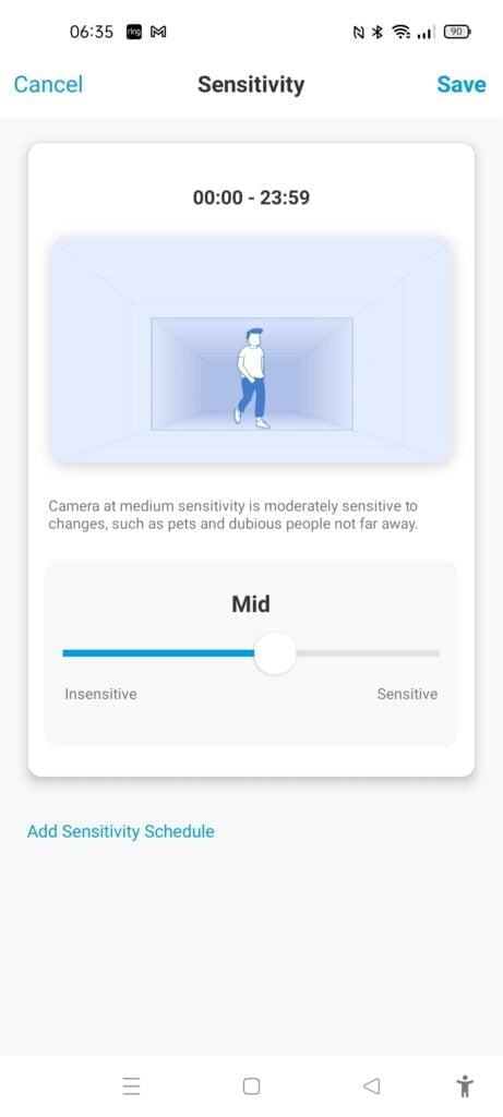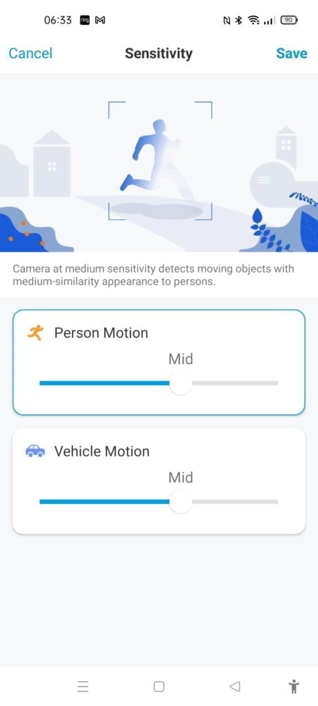 It is then possible to alter the sensitivity, so in my case, it is probably worth reducing the vehicle motion while keeping person high.