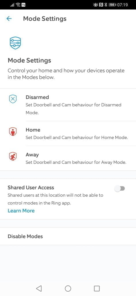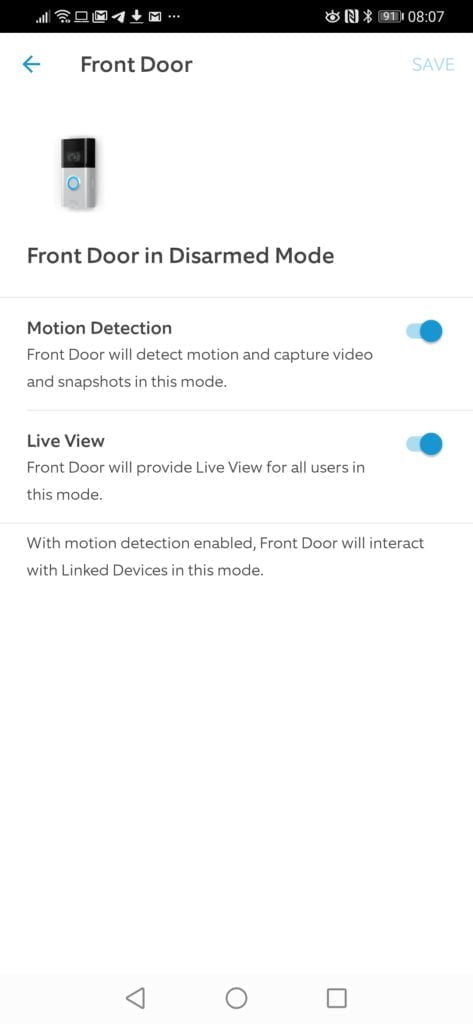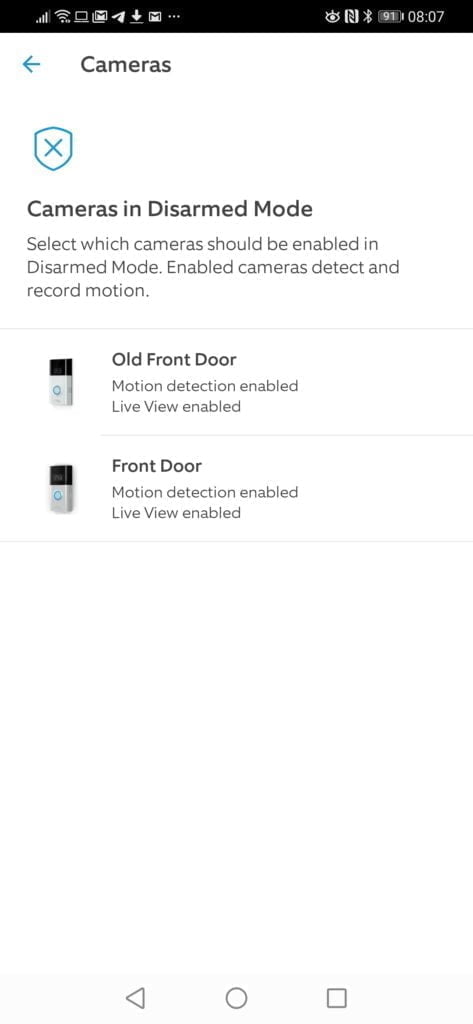 They have also rolled out new features to the app to set the status of the system to either disarm, home or away. This doesn’t particularly affect the doorbell, but if you use any of their indoor cameras, you can set it to home or disarm mode, and it will disable these cameras.