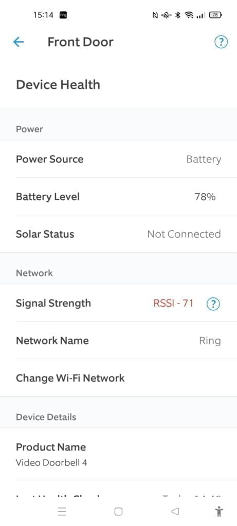 However, I am yet to experience any negative consequence of this low RSSI. I have not experienced any delayed notifications that I am aware of, whereas older Ring doorbells quite frequently had several second delays.