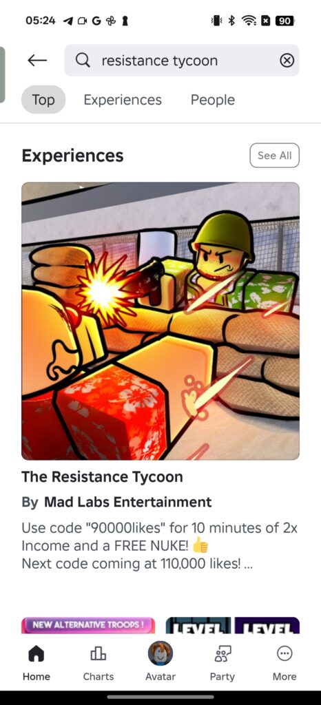 - Use the search bar to find “The Resistance Tycoon.”