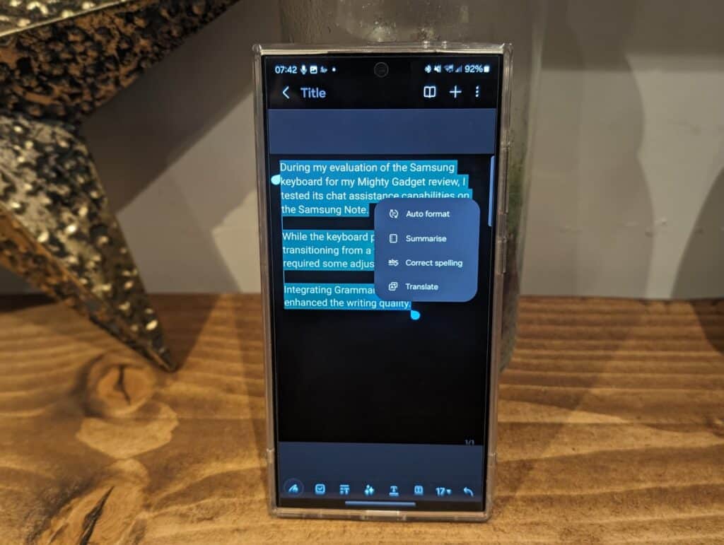 The Samsung Notes app includes some great AI features like Auto Format, Summarise, Translate and Correct Spelling.