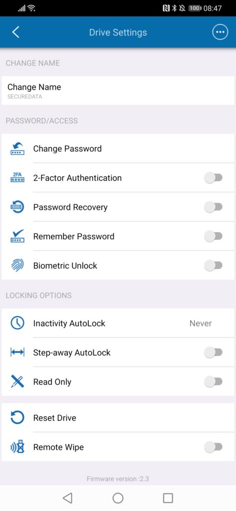 While the storage type has changed, everything is the same as the Flash Drive. It is incredibly easy to use. With the drive plugged in when you load up the app all I have to do to unlock it is use my fingerprint. With my desktop under my desk and the USB ports quite far away, being able unlock from my phone vs a keypad is far more convenient.