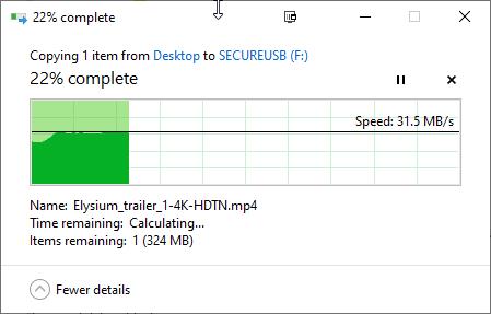 As for performance, it performs about the same as many USB dongles. Large file transfers copy at around 32MB/s, not blazingly fast but quick enough to stuff whatever important files you want on a 16GB stick.
