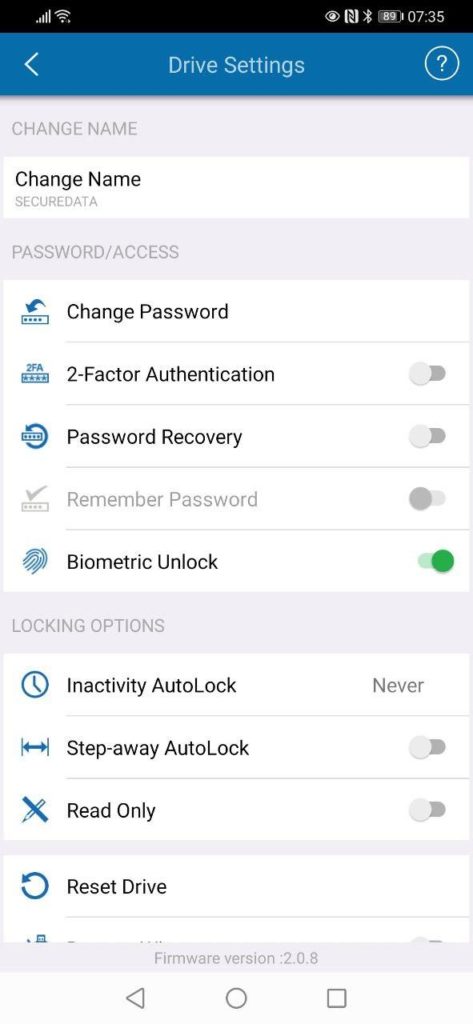 In recent years there has been a growing trend for hardware-encrypted storage that requires a user to simply type in a pin on the device to decrypt it. The SecureDrive SecureUSB BT works differently, by offering an app interface via USB allowing giving you a more usable interface for some of the features and the option for biometric unlocking.
