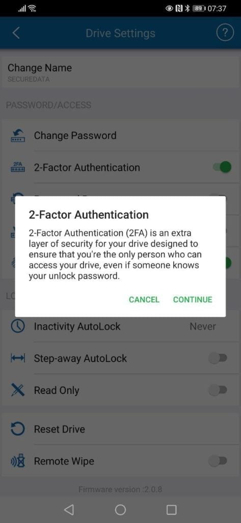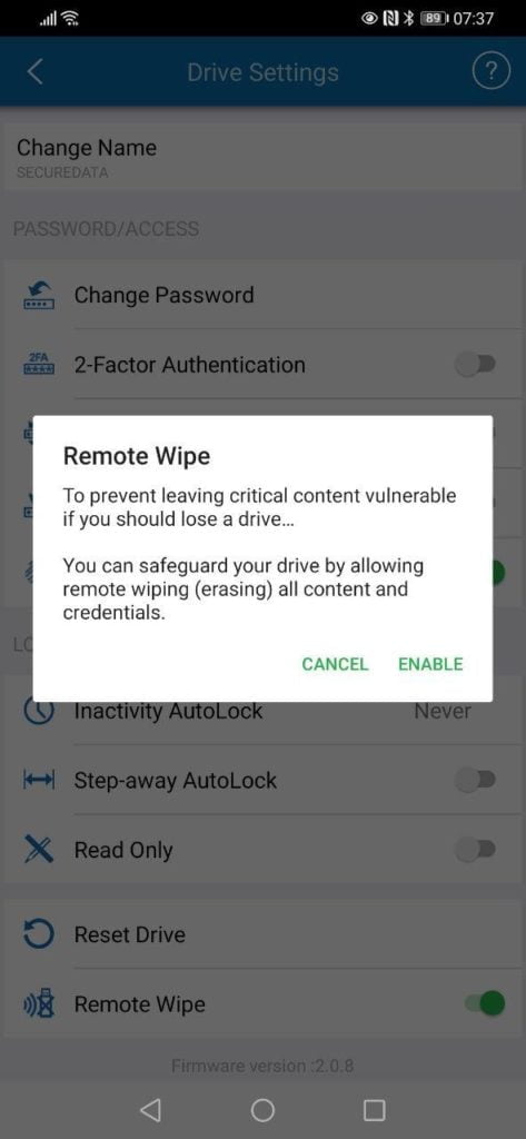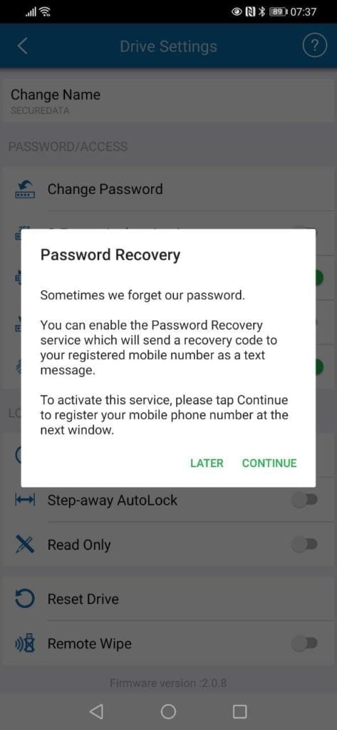 The benefit of using an app is the ease of use, and I found that this is true for the SecureDrive. You download the app, plug in the USB, wait for the app to find it then use the default 11223344 passwords to access the device.