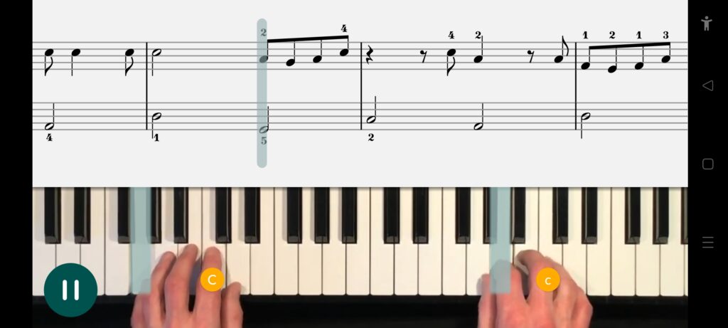 Lean On Me & Finger numbers will start off teaching you with the finger positions with the finger gym practices, as the lessons progress, these will be dropped, and instead, the lessons start out with “get to know the song”.