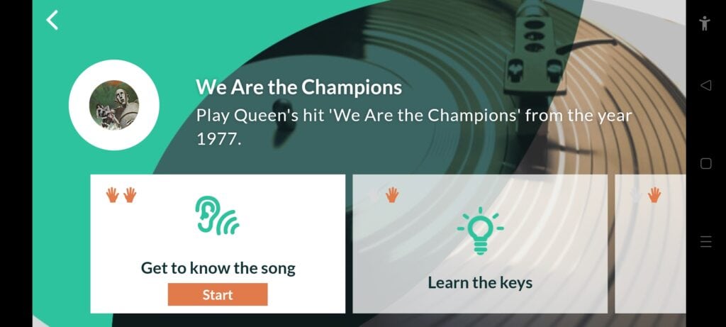 I found that all the initial parts of the lessons were quite easy, but the play the band section highlighted how poor I was at music. My ability to play the keys as fast and with the correct timing compared to the band was very poor indeed. I struggled with the early lessons with one-handed use, let alone with the lessons that require both hands at once. Practice makes perfect, though.