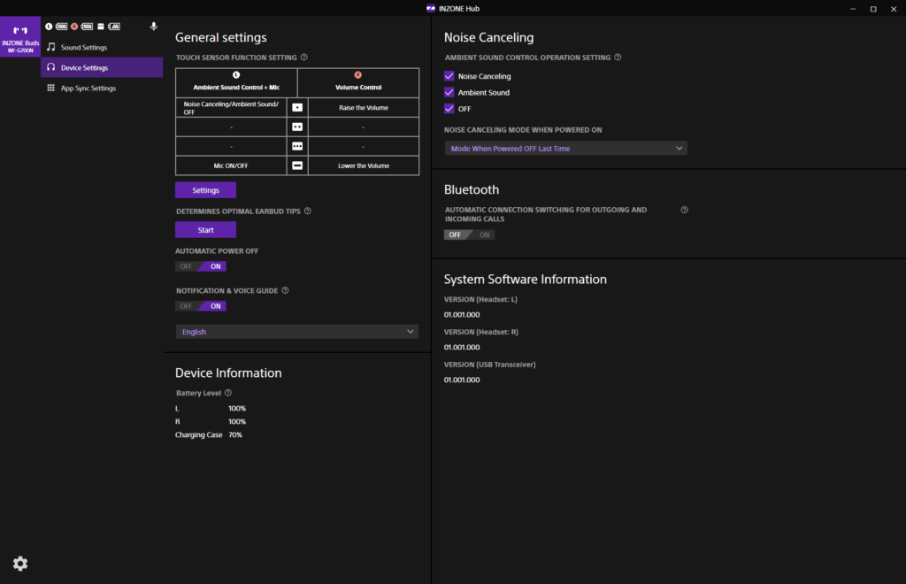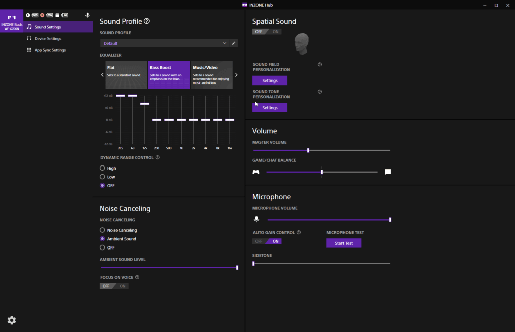 Windows supports Spatial Sound within its audio settings; by default, this is Windows Sonic for Headphones, but you can also buy the superior Dolby Atmos for headphones via the Windows Store. However, with these earbuds, those options are not available when using the USB-C dongle. It is the Inzone Hub that handles 360 Spatial Sound.