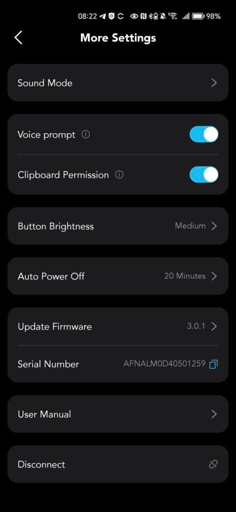 You can also set up custom EQ options. Interestingly, there is a scan QR code function which allows you to copy other people’s EQ options. I think this is quite a good idea as I neither have the patience nor knowledge to optimise an EQ (though I did have to do a bit with this speaker).