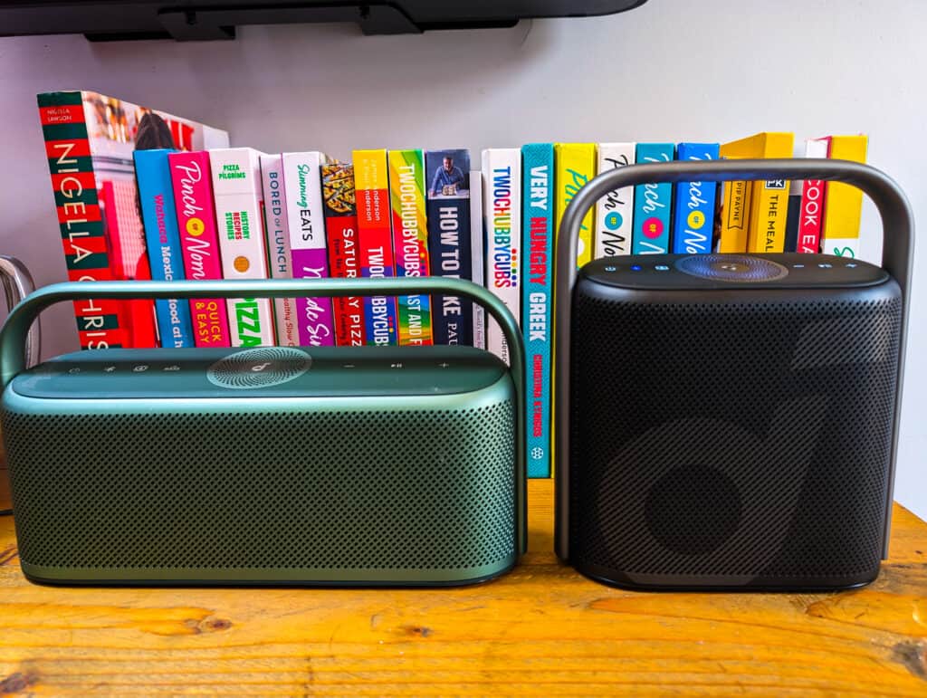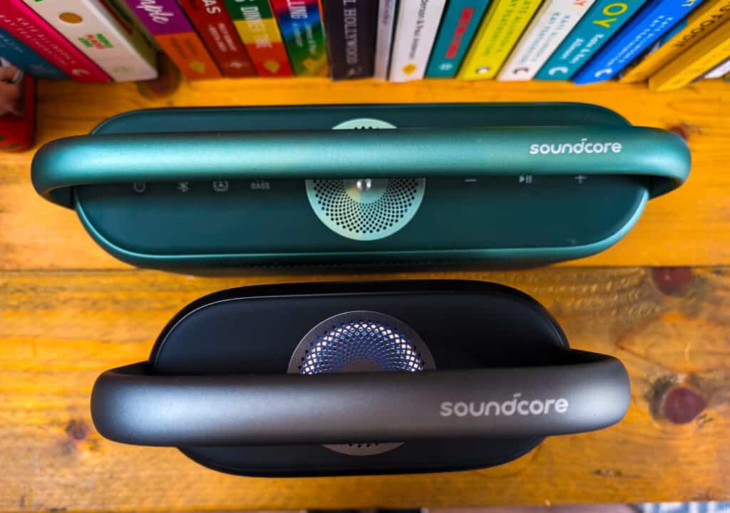 I dug my Soundcore Motion X600 out and placed them side to side to see how they compared. The X600 has an additional 10W of power, with its two woofers being 20W vs 15W.
