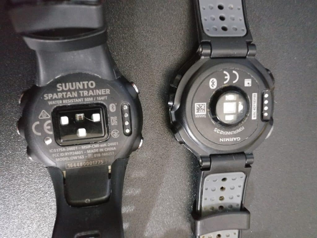 The watch is charged via a proprietary clasp which is very similar to the Garmin Forerunner.The optical HRM area is visibly larger than the Garmin with the LEDs spread further apart, it appears to use 2 green LEDs and 1 orange, and the HRM bump does not come out as far as the Garmin. I found that wearing the watch in bed was less annoying than the Garmin as it was rare I would see the LEDs flashing, whereas the Garmin was quite visible unless you wear the watch very tight.