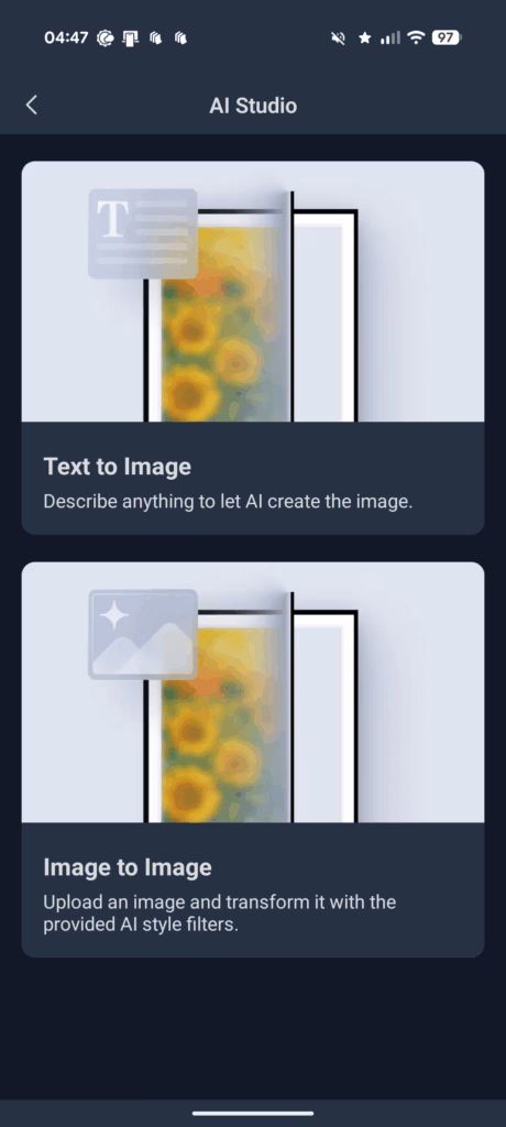 Processing times for AI generation vary depending on server load, but I typically found images were ready within 30-60 seconds. The app sends a notification when your image is complete, which is handy if you’re generating multiple images in a session.