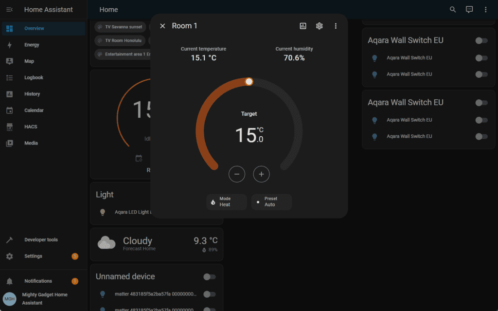 With Aqara, the scheduling system is more convoluted because it works the same as the other Aqara devices, so you have to use the if this, then that method of automating devices. While you can assign devices to a room, it doesn’t allow for easy, full room control either, I have to adjust each valve. You can group things like lights but not the radiator valves.