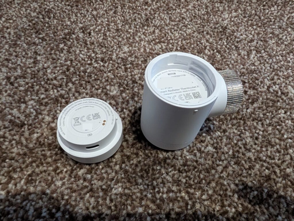 My radiator valves are standard, so I didn’t have to bother with any of the adaptors. I just unscrewed the old valves and added the new ones. The QR code to pair the valves is inside the battery compartment.