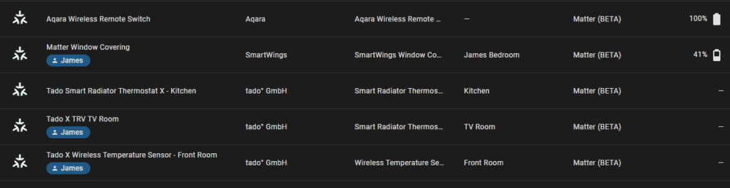 The one issue is that you need to add each device. This is because the devices themselves connect to Home Assistant. With systems like Philips Hue, the Hue bridge is the matter device, and this imports all the lights and accessories in one go.