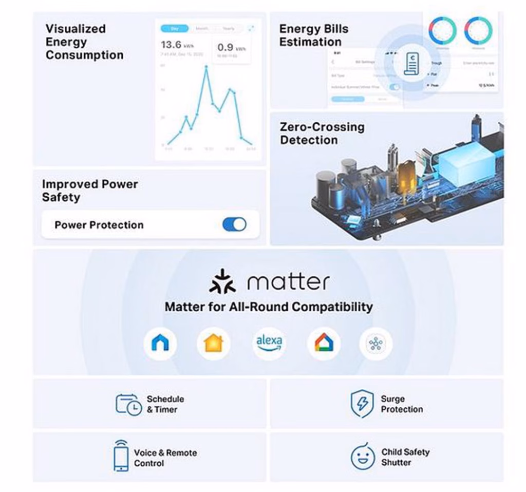 - 𝗠𝗮𝘁𝘁𝗲𝗿 𝗖𝗲𝗿𝘁𝗶𝗳𝗶𝗲𝗱 𝗦𝗺𝗮𝗿𝘁 𝗣𝗹𝘂𝗴 𝗘𝘅𝘁𝗲𝗻𝘀𝗶𝗼𝗻 𝗟𝗲𝗮𝗱 – Integrate Matter-certified Tapo devices with other Matter end products into your preferred ecosystem; Set up your Tapo smart plug with Apple Home Kit, Amazon Alexa, Google Home, Smart Things; There are no third-party HUB support Matter energy monitoring by now on Tapo P304M; Doesn’t support Energy Monitoring through Matter Hub currently