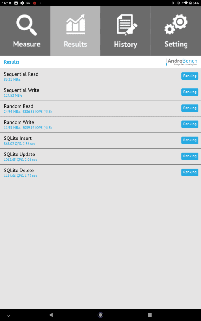 The eMMC drive is nice and big, but it is incredibly slow, sequential read speeds of 82MB/s and random reads of 25MB/s will likely hinder the overall performance of the relatively good chipset. You may even be better off having a fast microSD card used for app storage.